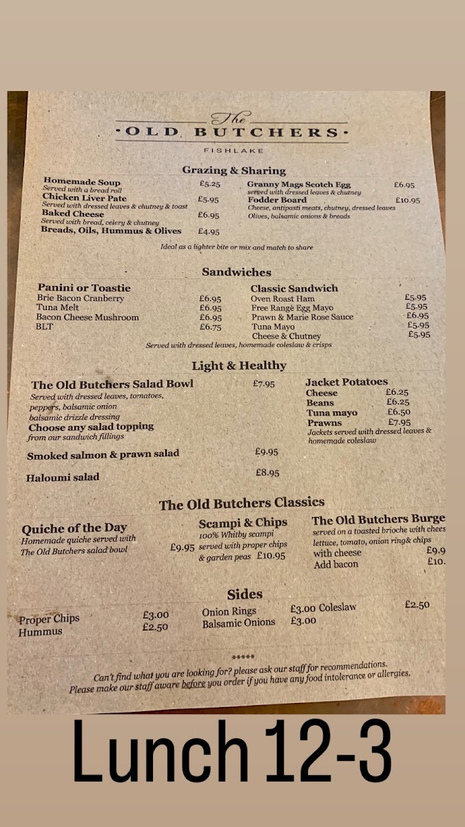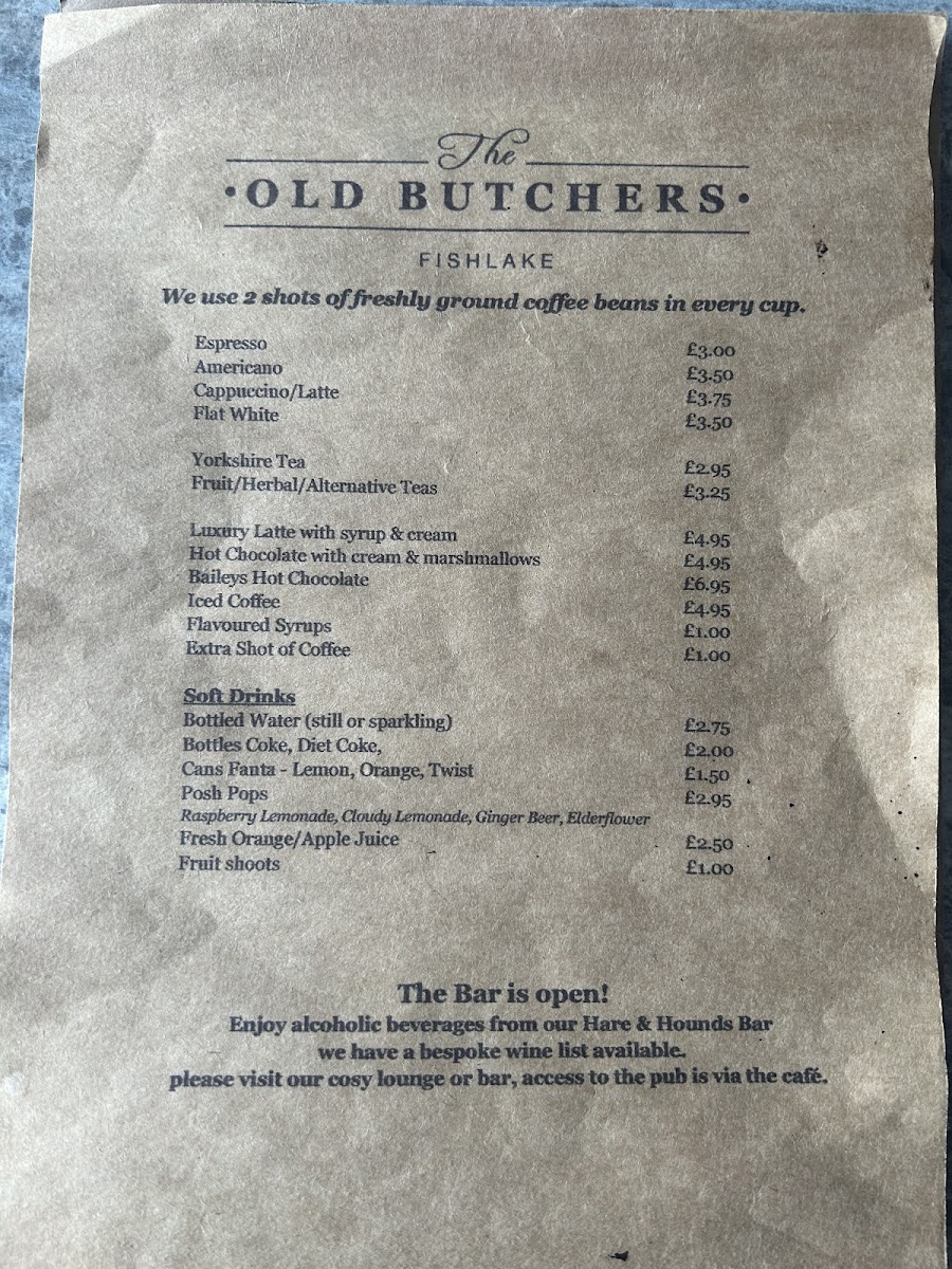 The Old Butchers Cafe & Bistro at The Hare & Hounds Pub Menu