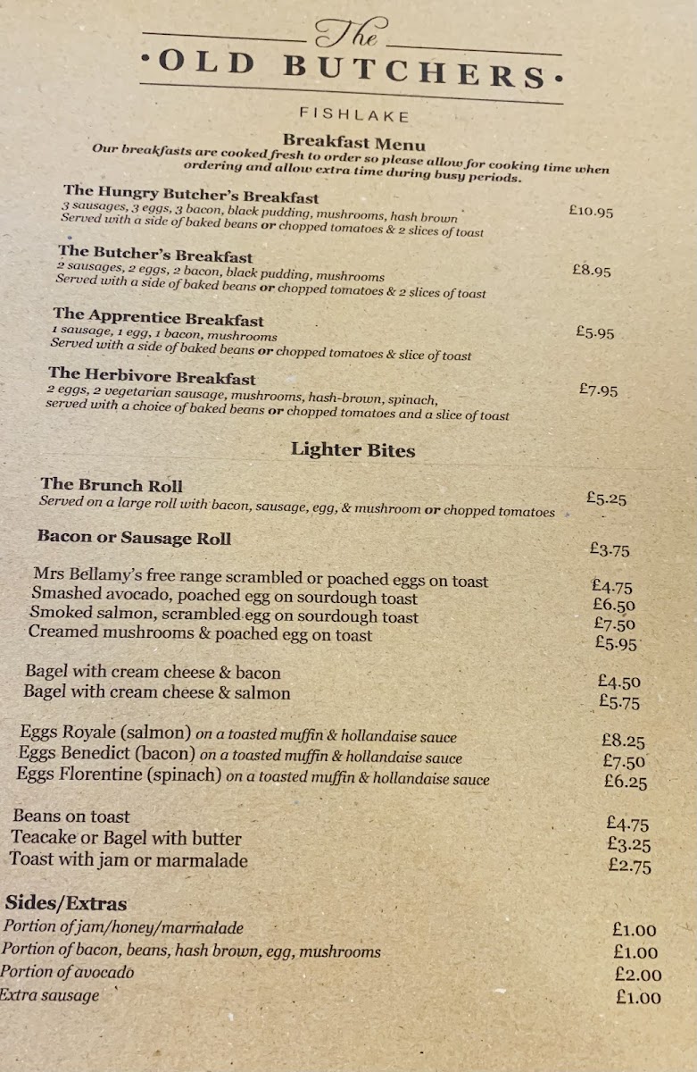 The Old Butchers Cafe & Bistro at The Hare & Hounds Pub offers a menu that reflects the charm of a welcoming, village café with a touch of bistro flair. The food is thoughtfully simple and comforting, perfect for casual breakfasts, light lunches, or relaxed afternoon stops. Whether you're starting the day with fresh coffee and a hearty Butchers Breakfast or enjoying lighter options like smashed avocado on sourdough, the menu suits a variety of appetites and times.